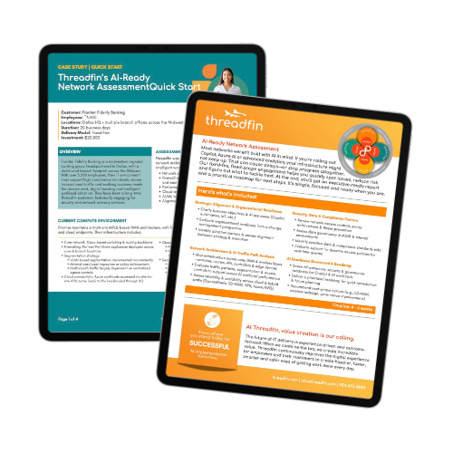 Threadfin’s AI-Ready Network Assessment is a focused, fixed-scope engagement designed to eliminate uncertainty. In just 20 business days, we help IT and infrastructure leaders assess readiness, identify potential roadblocks and map a clear path forward.